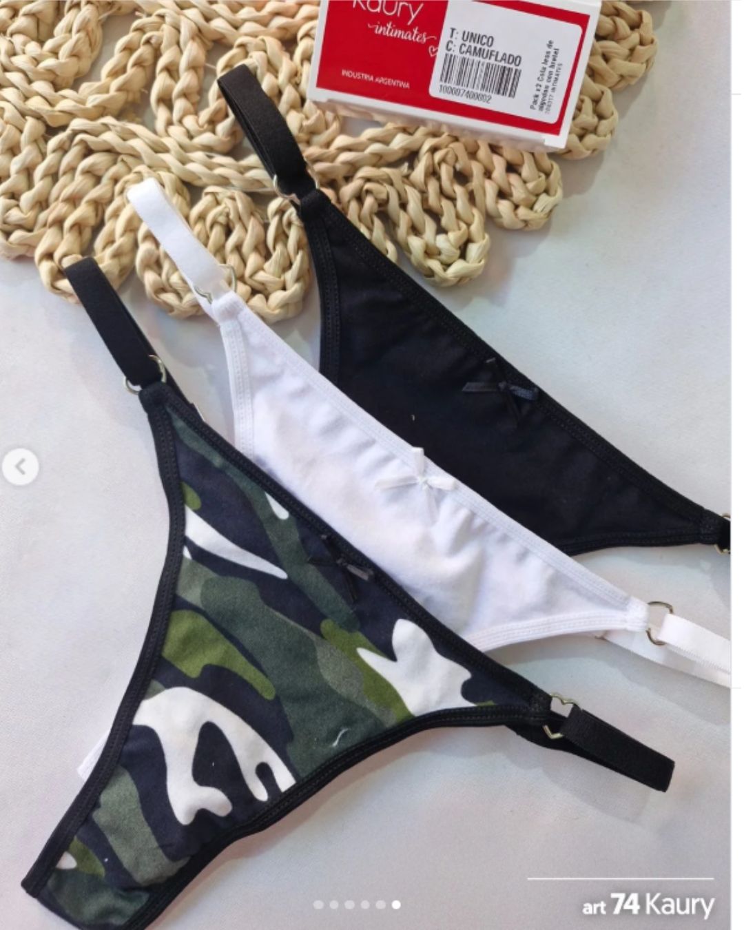 • ART 74 Pack x3 Cola less regulable de algodón liso y estampado. Colores Azul floreado – Gris – Rosa vintage..
